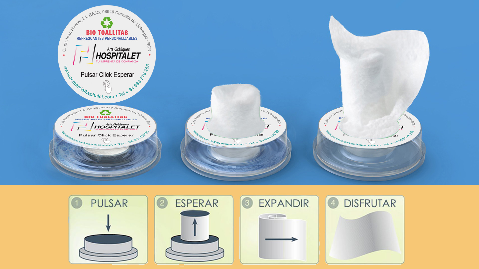 Personalización de las BIO-Toallitas húmedas individuales en capsulas.
