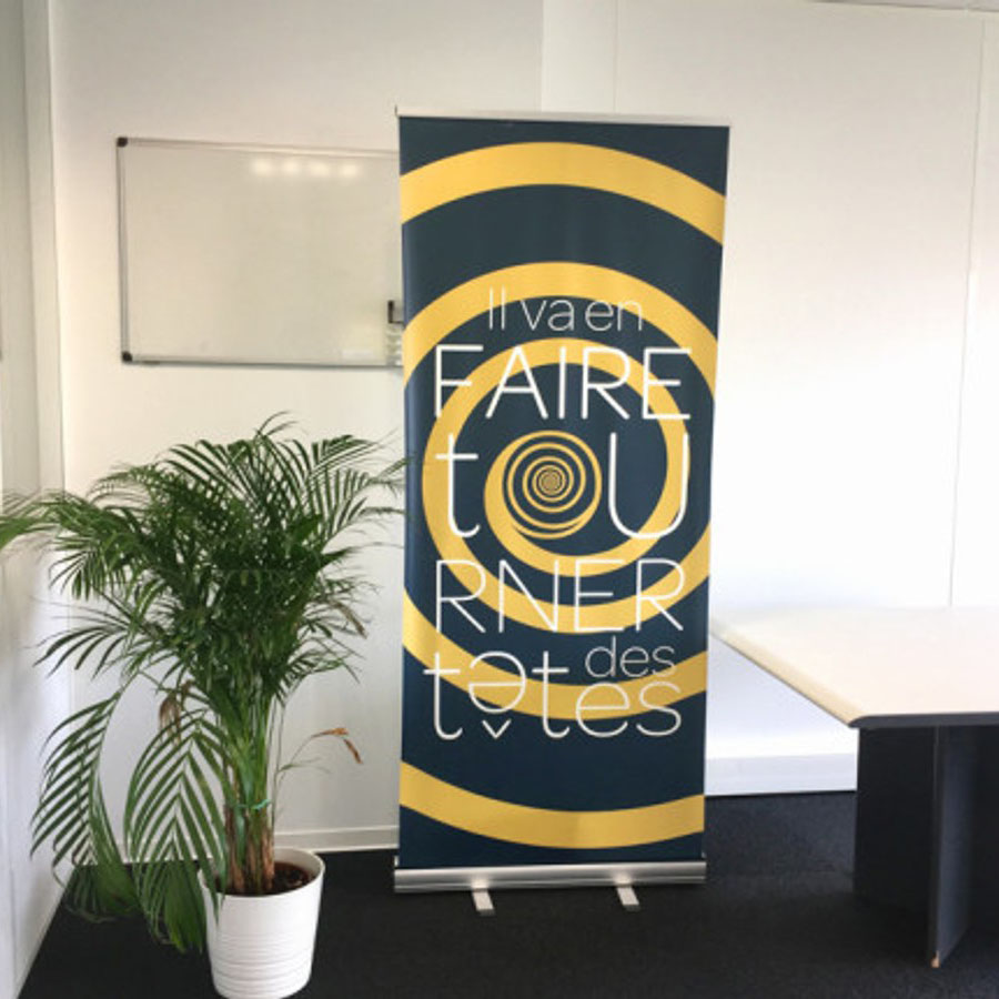 Soporte de comunicación imprescindible para cualquier tipo de actividad, el roll-up de aluminio es el invitado estrella de todas las ferias, congresos, exposiciones y demás eventos para aumentar la visibilidad de tu negocio, empresa o establecimiento. En función de tus necesidades, está disponible en 7 formatos que van desde 84 x 204 cm hasta 200 x 300 cm. Fácil de instalar y almacenar gracias a un sistema de enrollador, puedes llevarlo contigo a cualquier lugar ya que incluiye una bolsa de transporte acolchada. Ahora te toca definir cuidadosamente la imagen a la que deseas dar visibilidad.